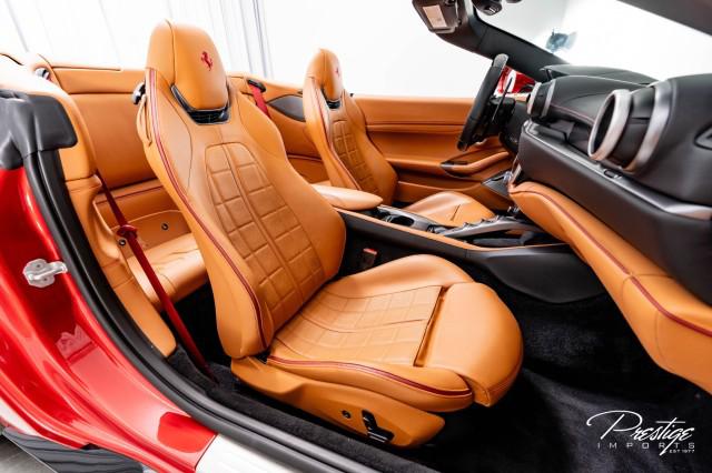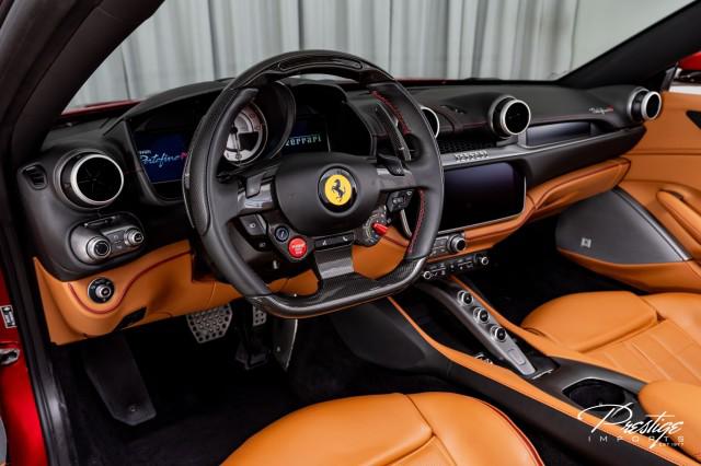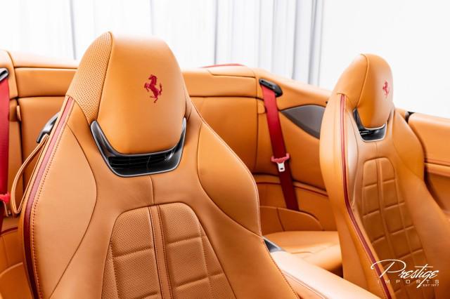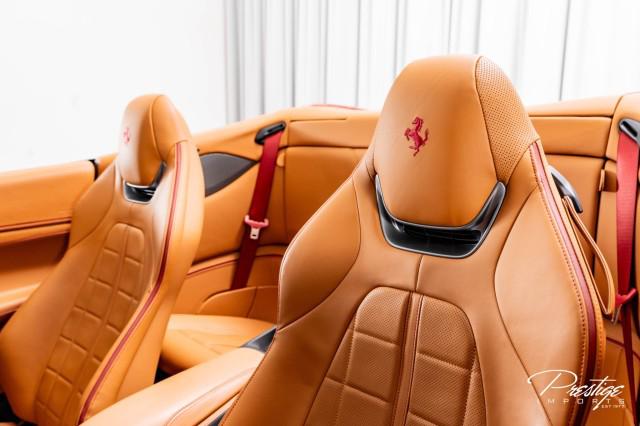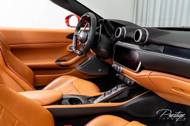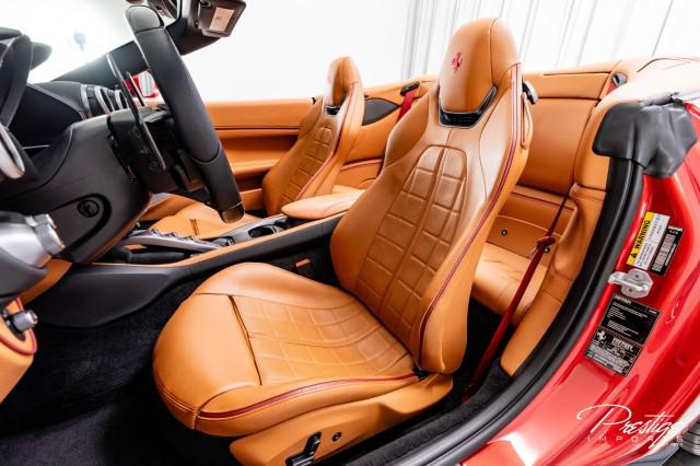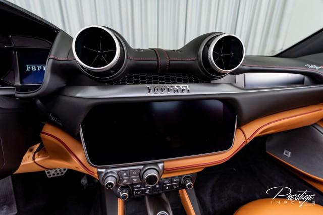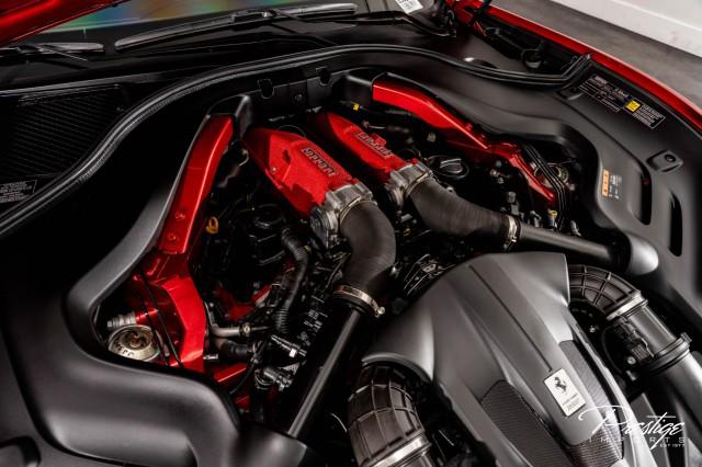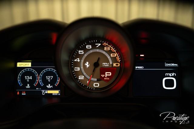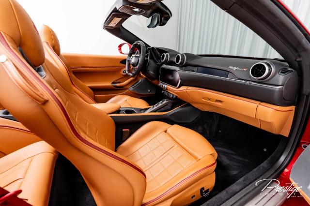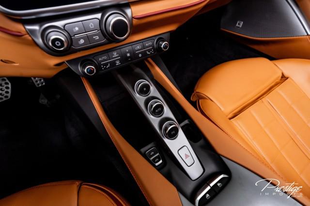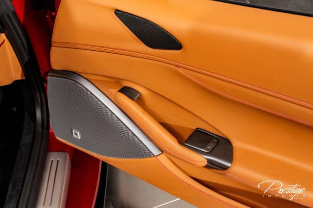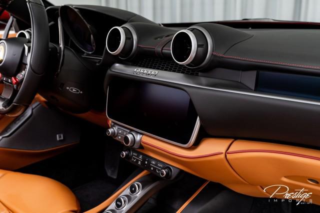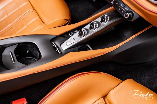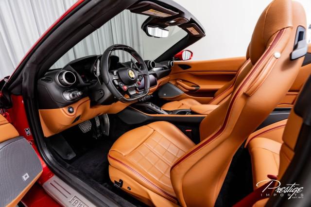 Finished in a refined tan leather interior and red accents, the cabin balances warmth with modern sophistication — diamond stitching, contrast accents, and Ferrari’s signature attention to detail.
