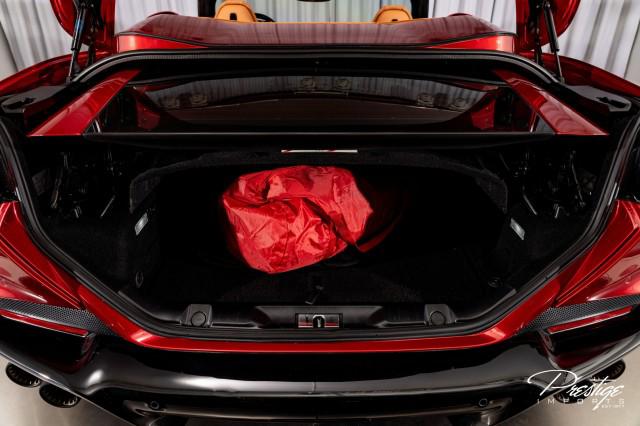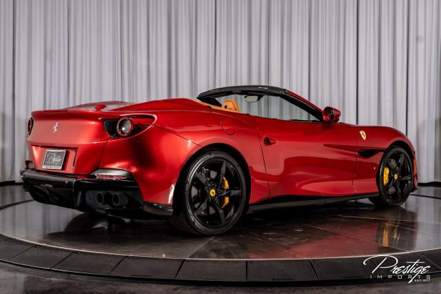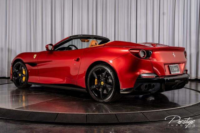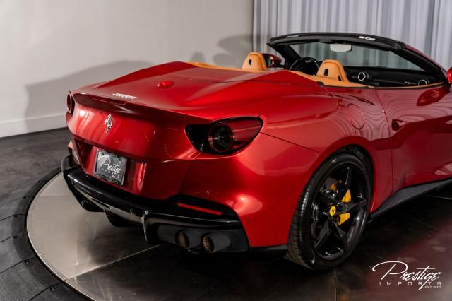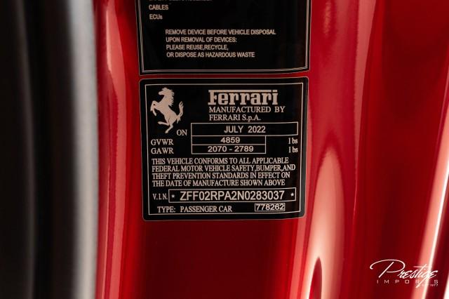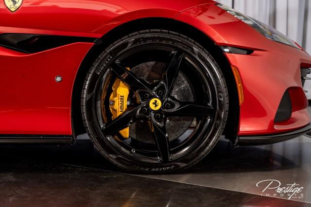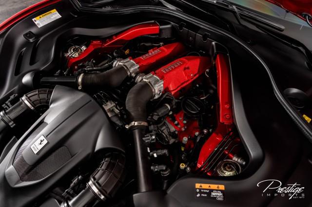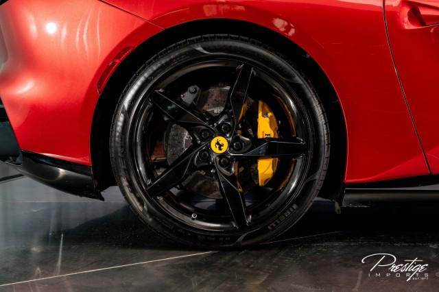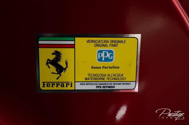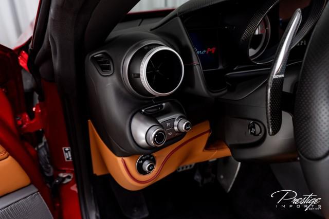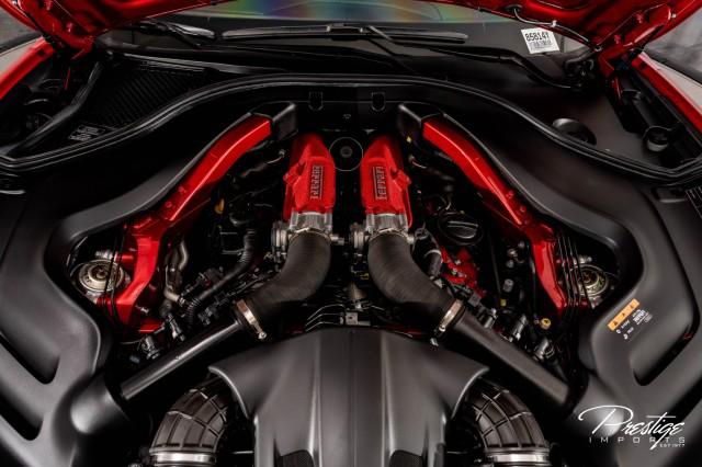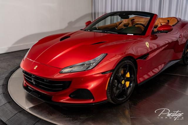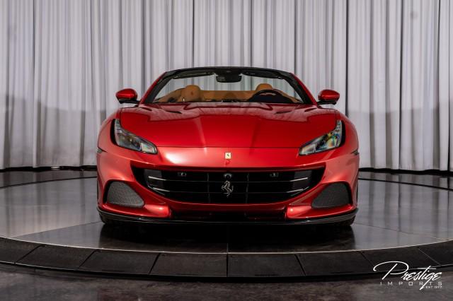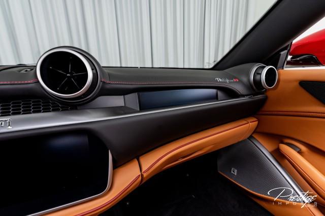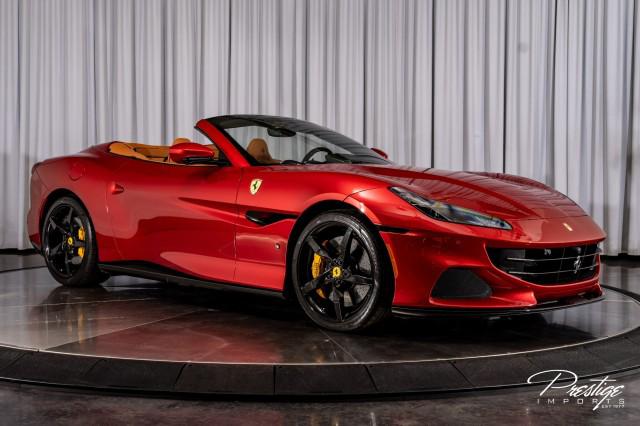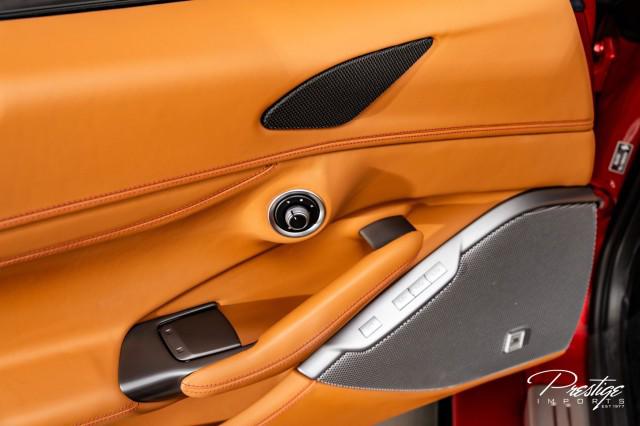 Finished in a refined tan leather interior and red accents, the cabin balances warmth with modern sophistication — diamond stitching, contrast accents, and Ferrari’s signature attention to detail.