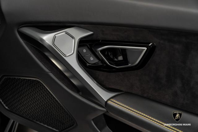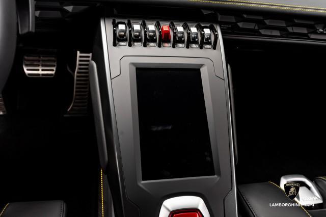 Inside, the cabin is pure Lamborghini: premium materials like leather, Alcantara and optionally Carbon Skin. The driver-centered cockpit layout includes a high-performance steering wheel, sporty buckets and minimal compromises seating just two with focus fully on driving thrill. The infotainment and comfort features are present, but everything is built around performance and emotion.