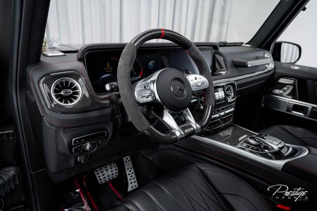 This 2022 Mercedes-Benz G 63 AMG stands apart with the BRABUS G 800, taking the iconic G-Class and pushing it well beyond factory form. Under the hood, the BRABUS-tuned 4.0L twin-turbo V8 delivers approximately 800 horsepower and 737 lb-ft of torque, launching this luxury SUV from 0–60 mph in just over 4 seconds while maintaining confident control through AMG’s 4MATIC all-wheel drive system. Visually, the exterior is defined by extensive exposed carbon fiber, including the hood, grille outline, lower bumper, side trim, and additional accent areas, adding depth and aggression to the G-Wagon’s unmistakable shape without overdoing it.