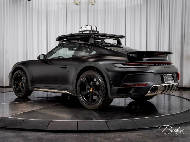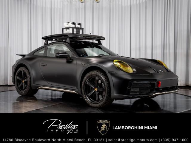 The Porsche 911 Dakar redefines what a 911 can be, blending iconic performance with true all-terrain capability. Powered by a 3.0-liter twin-turbo flat-six producing 473 horsepower, it delivers rapid acceleration through an 8-speed PDK and all-wheel drive system engineered for confidence on any surface. A raised suspension, specialized all-terrain tires, and dedicated Rallye and Off-Road modes allow it to move seamlessly from pavement to dirt, sand, or snow. Lightweight construction and rear-axle steering preserve the precision and agility expected from a 911, even in unpredictable conditions. Inside, a purposeful, driver-focused cabin with Race-Tex and performance features keeps every drive engaging. Limited to just 2,500 units, the Dakar stands as a rare and versatile expression of Porsche’s rally heritage, built for those who want to go beyond the road.