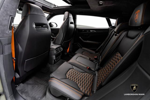 On the interior, the Nero Ade leather cabin wraps you in sophistication, set ablaze by Arancio Leonis stitching tracing every curve and contour. This gorgeous color combo meshes beautifully with the Verde Turbine Matt on the exterior. Every surface feels tailored—carbon fiber accents, hexagonal detailing, and Lamborghini’s dual digital displays immersing you in control.