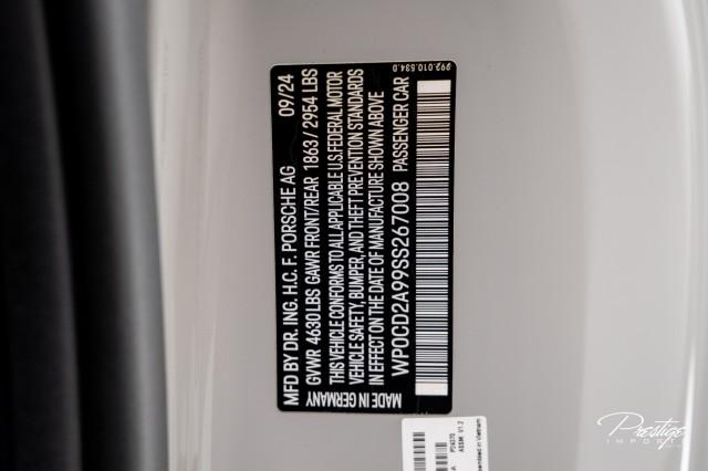 Powered by a 3.7-liter twin-turbocharged flat-six producing 572 horsepower, the 911 Turbo launches from 0–60 mph in just 2.7 seconds, thanks to Porsche’s lightning-fast 8-speed PDK transmission and advanced all-wheel-drive system. Its signature wide-body stance, active aerodynamics, and sculpted rear end give it an unmistakable presence on the road, while the interior offers a refined driver-focused cockpit finished with premium materials and cutting-edge technology.